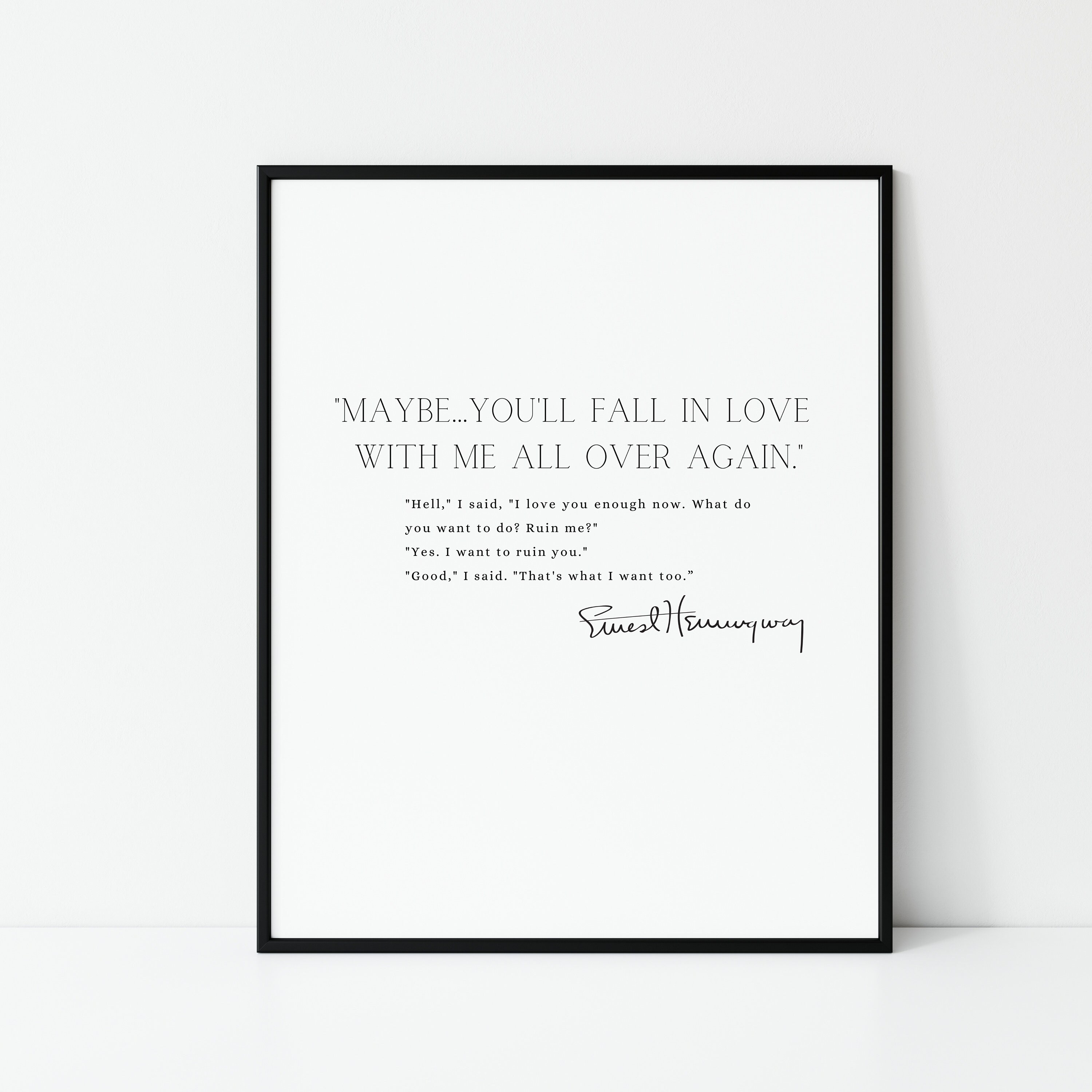 2189K votes Get the book Maybeyoull fall in love with me all over again Hell I said I love you enough. God knows I didnt mean to fall in love with her. Ernest Hemingway 293 pages.